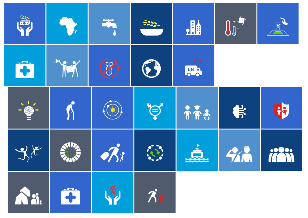 Servicios / áreas de trabajo: La ONU organiza su labor en cinco grandes áreas: mantener la paz y la seguridad, proteger los derechos humanos, proporcionar ayuda humanitaria, apoyar el desarrollo sostenible y la acción climática y defender el derecho internacionalun.org. Estas áreas incluyen actividades como misiones de paz, asistencia a refugiados, programas de derechos humanos y promoción de los Objetivos de Desarrollo Sostenible (ODS).