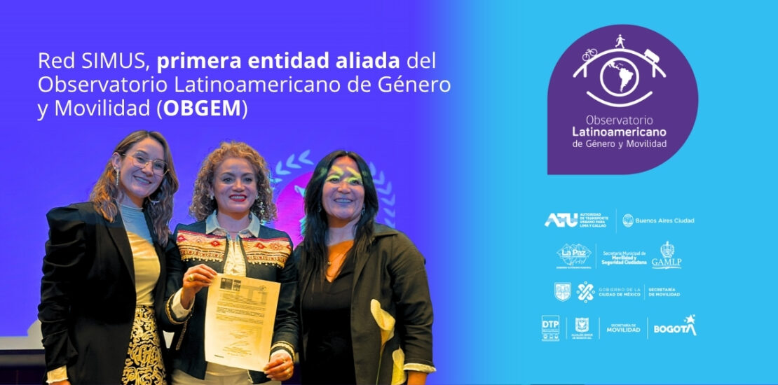 En el marco de la cooperación internacional y la promoción de políticas públicas inclusivas, Red SIMUS se convirtió en la primera entidad en firmar una alianza estratégica con el Observatorio Latinoamericano de Género y Movilidad (OBGEM), una iniciativa respaldada por organismos multilaterales como el Banco Interamericano de Desarrollo (BID), el Banco Mundial, la CAF, la Unión Europea – Global Gateway, WRI, GIZ, UK SIP y el Gobierno de Canadá, entre otros.